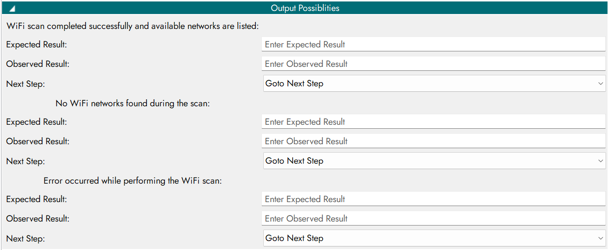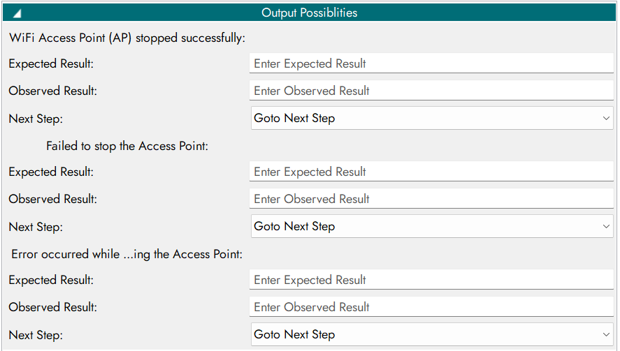 The WiFi Agent manages configuration, control, and monitoring of WiFi-related functionalities on the device during test execution. It enables automated testing of wireless network setup, connectivity, client management, and internet access by abstracting WiFi operations into reusable test blocks.