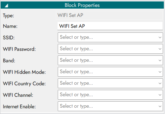 Configures the device to operate as a WiFi Access Point (AP) with the specified network settings.